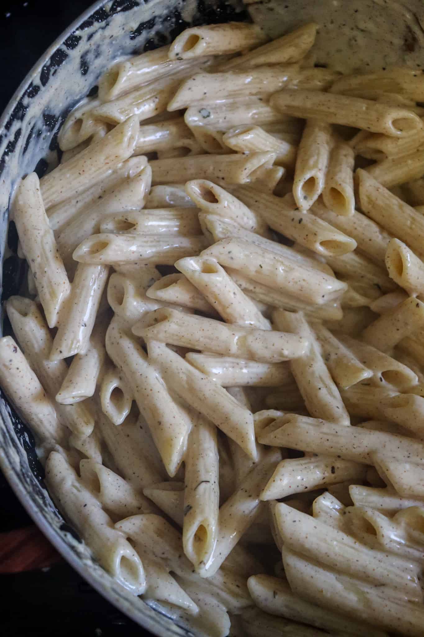 - Once your cajun alfredo sauce is ready, fold in your cooked pasta and stir to fully coat the pasta noodles in the cream cajun sauce. If you see your pasta sauce is drying out, add a splash more cream to it and continue to mix.