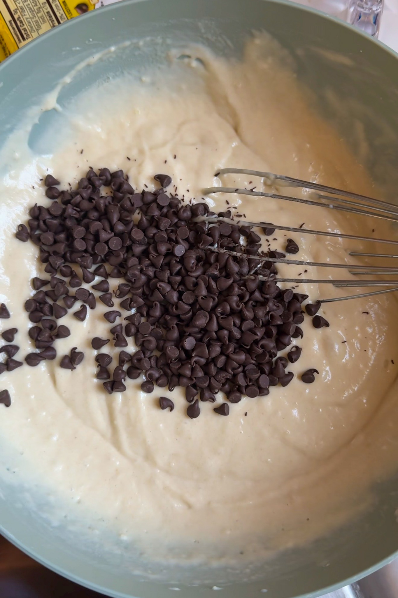 3. Add the chocolate chips to the batter and fold to combine.